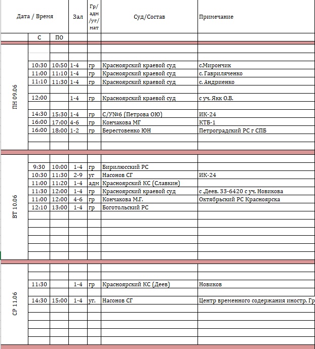 График проведения заседаний ВКС с 02.06.2025 по 06.0 62025 |