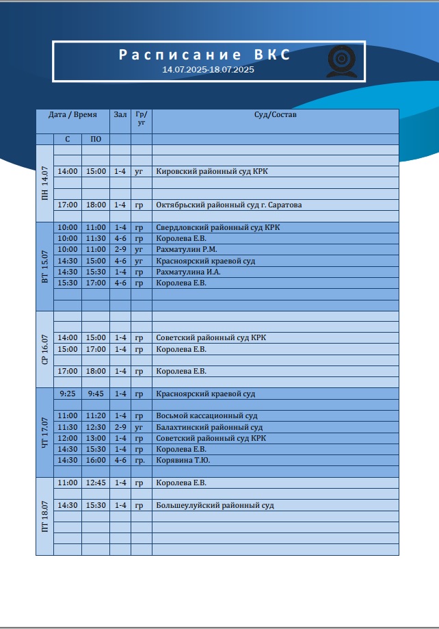 | Расписание ВКС с 14.07.2025 г. по 18.072025 г. | версия для печати |