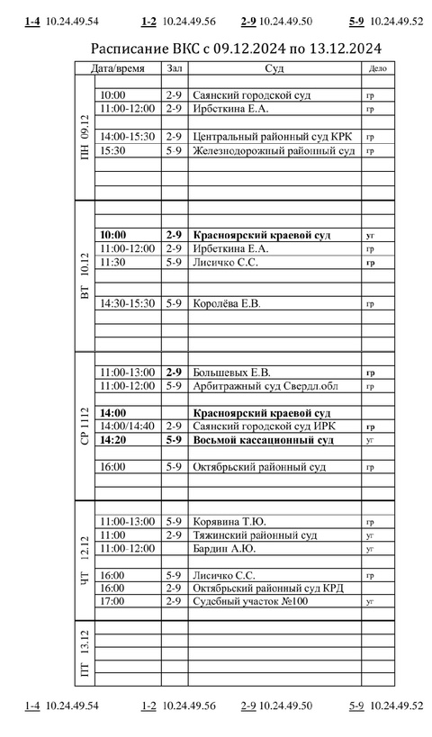 | Расписание ВКС | версия для печати |