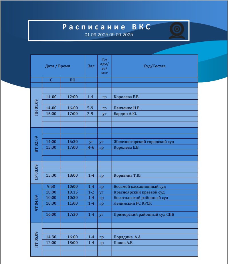 Расписание ВКС с 01.09.2025 по 05.09.2025 |