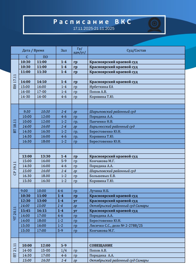 Расписание ВКС с 17.11.2025 по 21.11.2025![]() |