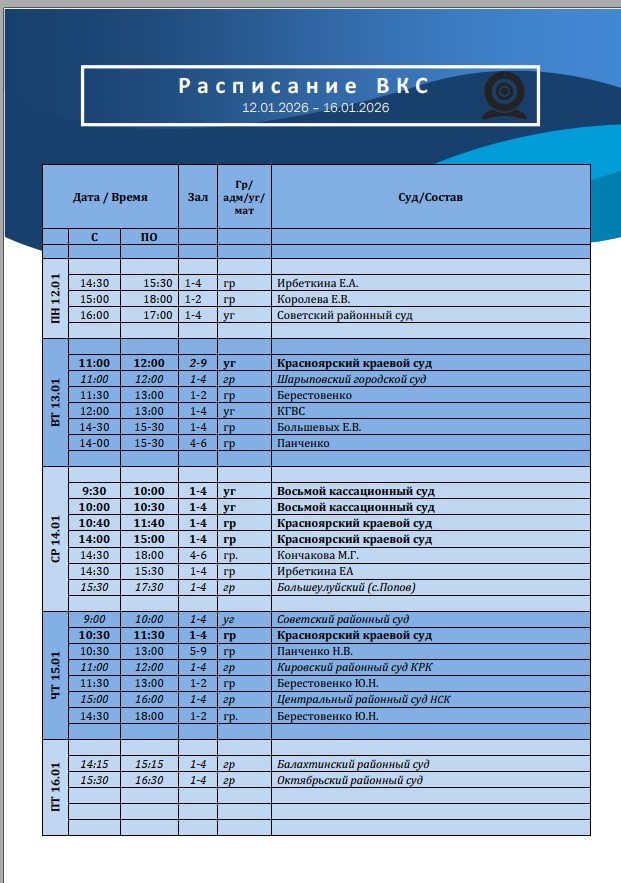 | Расписание ВКС с 12.01.2026 по 30.12.2026 | версия для печати |