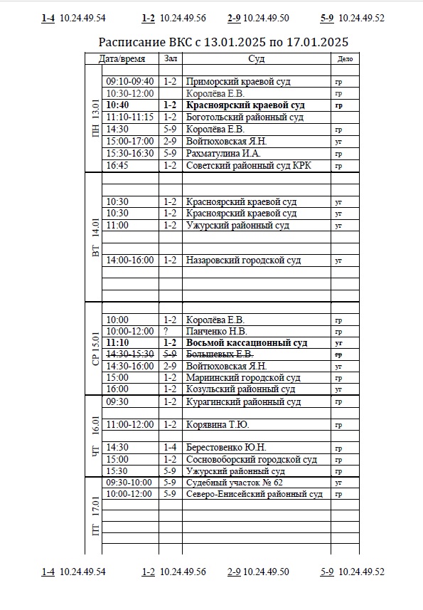 Расписание ВКС с 13.01.2025 по 17.01.2025 |