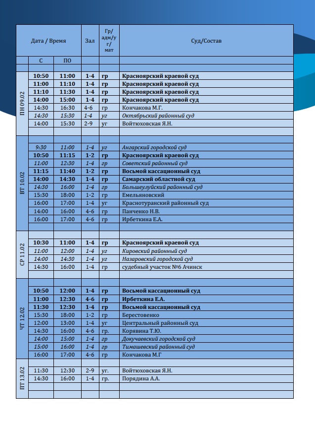 Расписание ВКС с 09.02.2026 по 13.02.2026![]() |