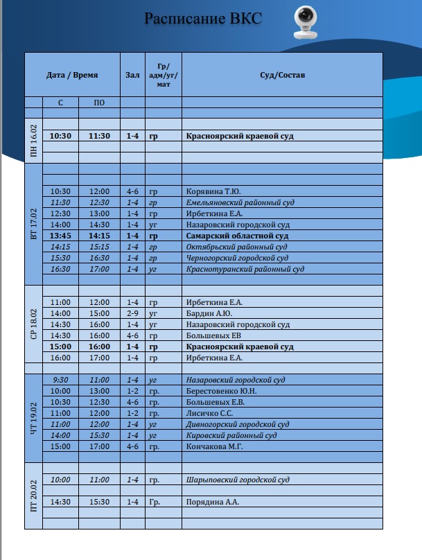 Расписание ВКС с 16.02.2026 по 20.02.2026![]() |