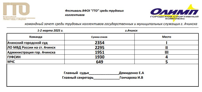 | Фестиваль ГТО среди трудовых коллективов города Ачинска 2025 г. | версия для печати | ||||