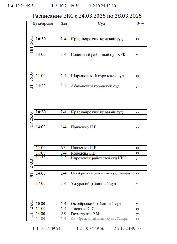 Расписание ВКС с 24.03.2025 по 28.03.2025 |