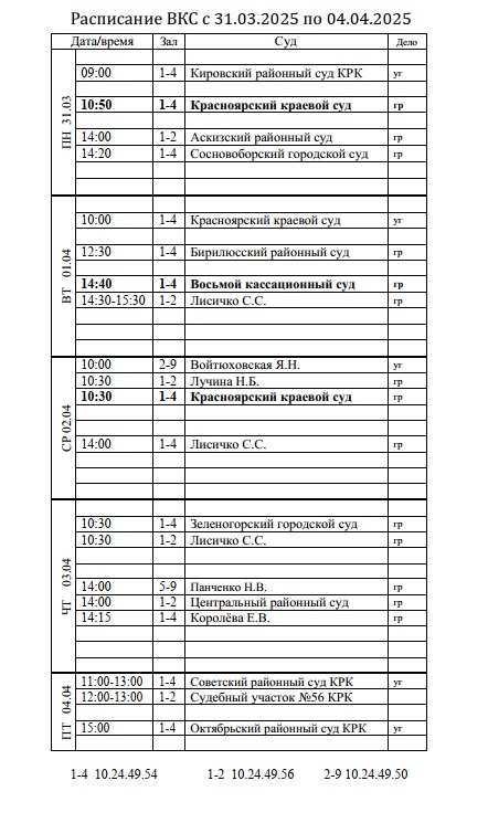 Расписание ВКС с 31.03.2025 по 04.04.2025![]() |