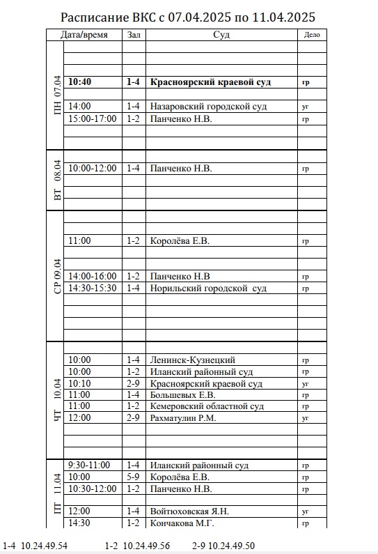 | Расписание ВКС с 07.04.2025 по 13.04.2025 | версия для печати |