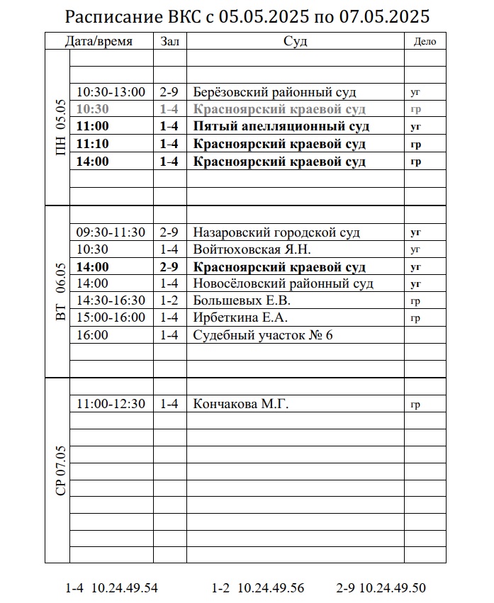 Расписание ВКС с 28.04.2025 по 30.04.202 5 |