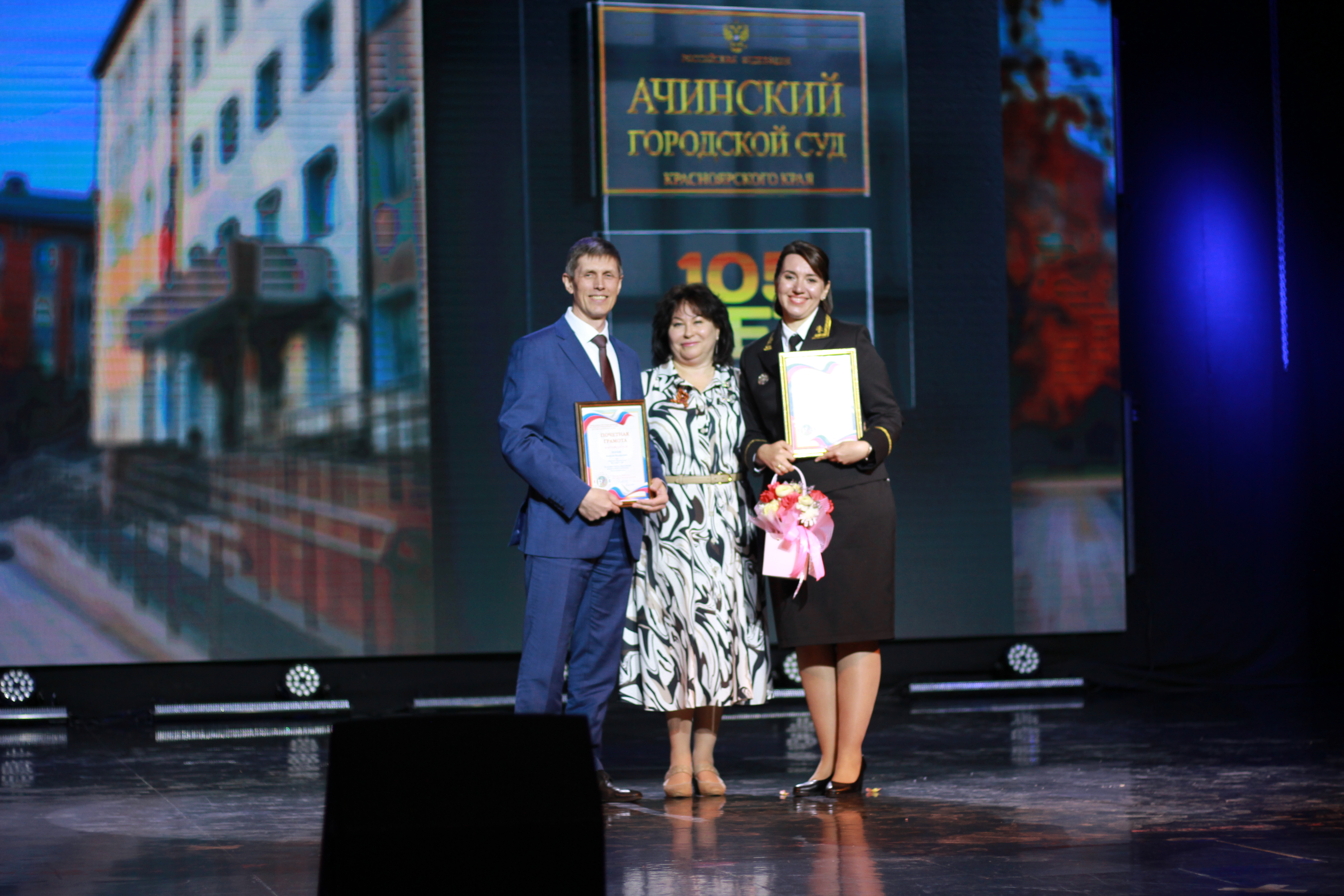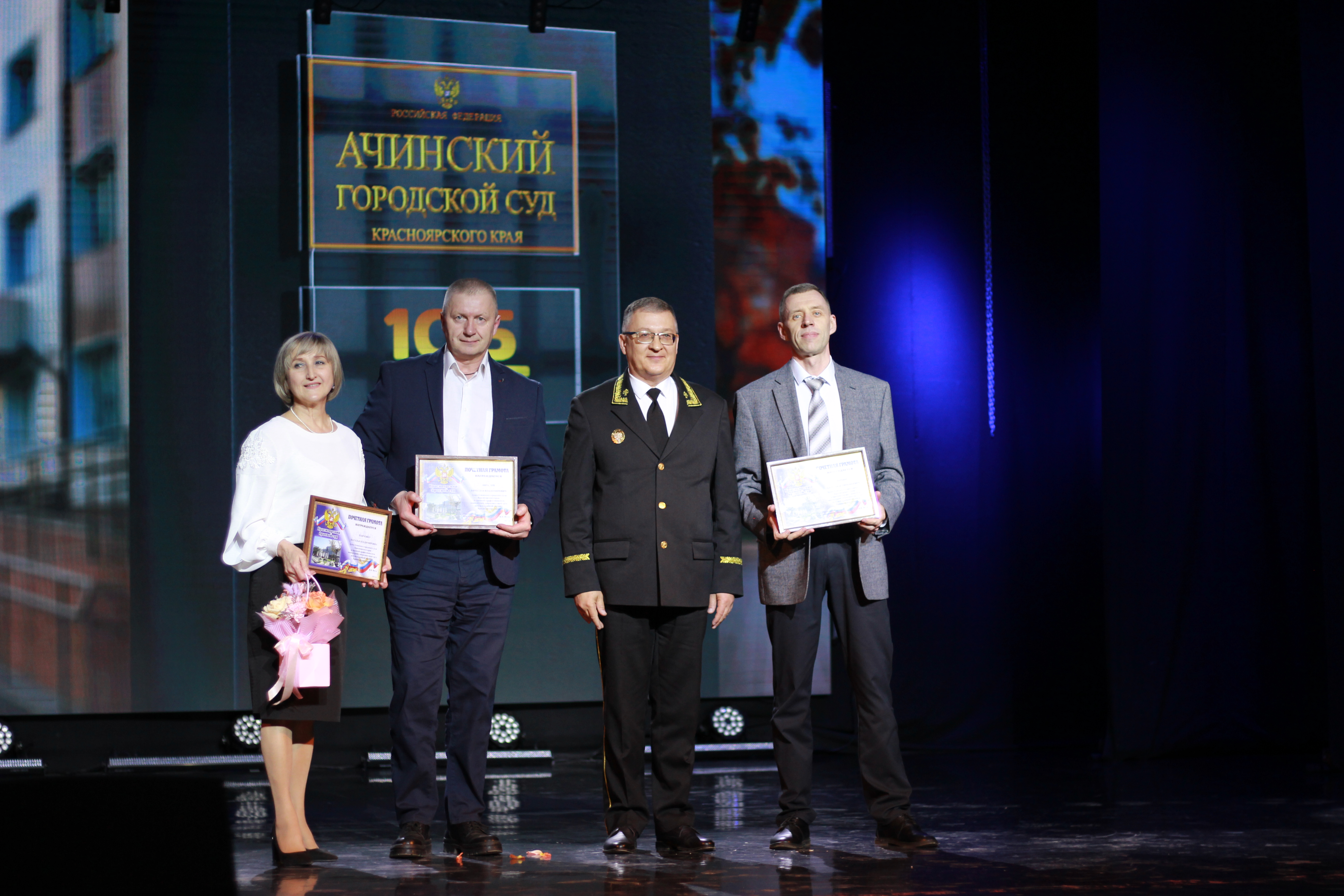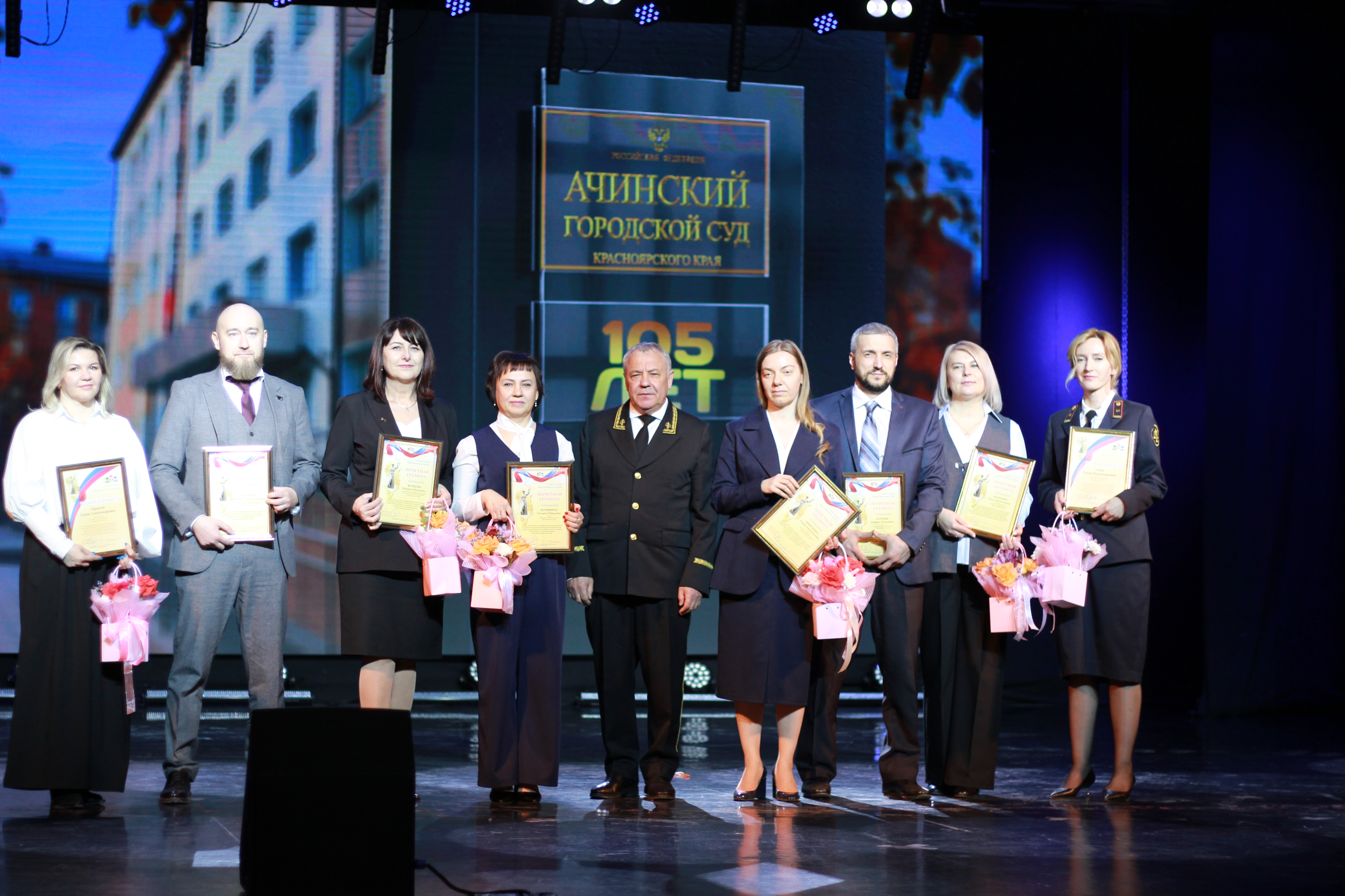 105-летний юбилей празднует Ачинский городской суд, эта знаменательная дата - яркая веха в истории судопроизводства Ачинска. За 105 лет Ачинский городской суд прошел долгий путь, пережив множество реформ, связанных с изменениями в государственном устройстве и общественно-политической жизни. Тем не менее, он всегда выполнял свою основную задачу – правосудие, основанное на принципах законности и справедливости. Торжественная часть празднования юбилея состоялась в Городском дворце культуры г. Ачинска, в фойе была размещена экспозиция работ заслуженного юриста Российской Федерации, председателя Ачинского городского суда Красноярского края в почетной отставке Ирбеткиной Галины Никифоровны и судьи Ачинского городского суда Красноярского края Ирбеткиной Елены Анатольевны «Служа закону, служу искусству». Также на праздновании юбилея присутствовали ветераны, судьи в Почетной отставке 1. Ирбеткина Галина Никифоровна 2. Мороз Нина Никифоровна 3. Римская Нина Михайловна 4. Матушевская Елена Петровна 5. Настенко Татьяна Николаевна 6. Дорофеева Наталья Анатольевна 7. Левичева Ольга Юрьевна 8. Киняшова Галина Александровна 9. Кудро Евгений Викторович |