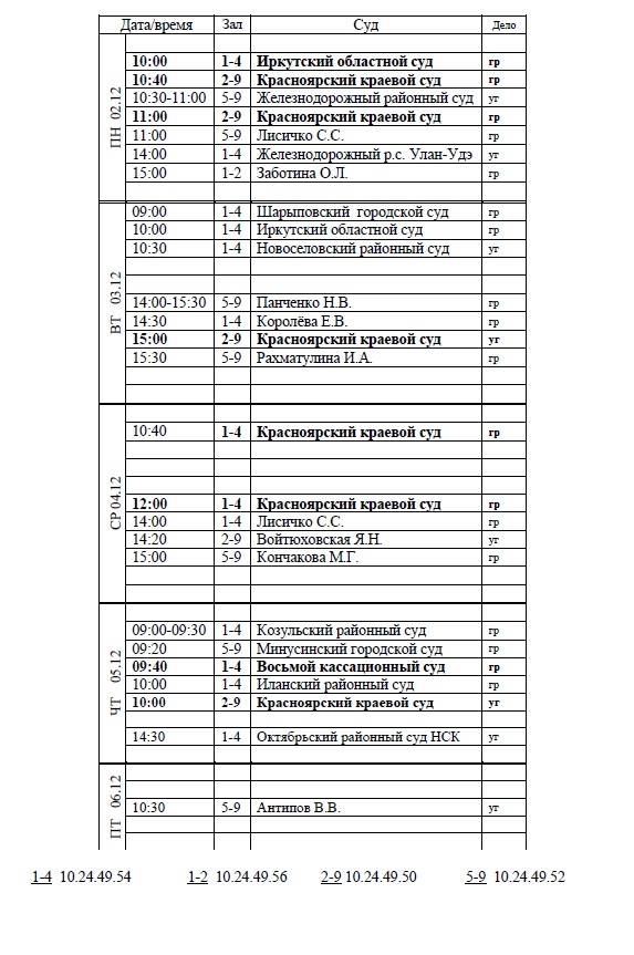 Расписание ВКС с 02.12.2024 по 06.12.2024 пь |
